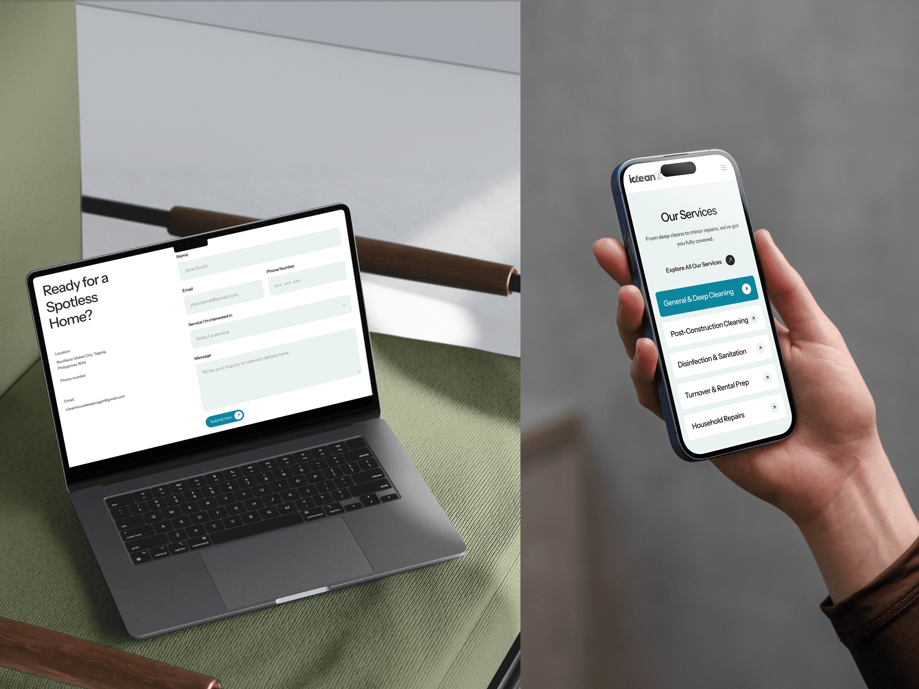 iClean's identity had been built on years of earned trust — the challenge wasn't starting from scratch, but knowing what to keep. I refined their visual language to feel polished and contemporary without erasing the warmth and reliability that their long-standing clients already associated with the brand. The result is an identity that speaks to a new generation of homeowners who expect premium digital experiences, while remaining unmistakably iClean.