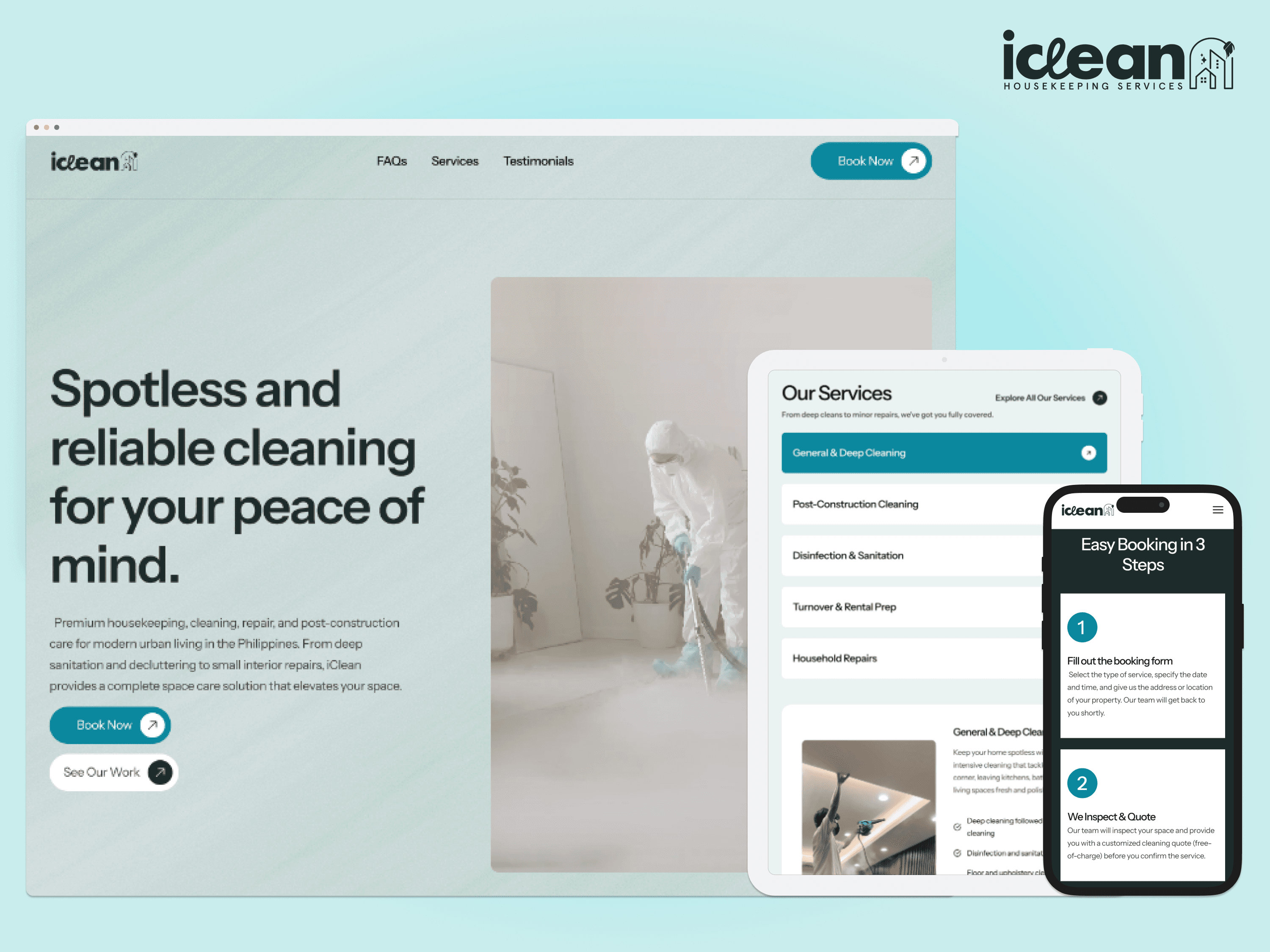 For almost 20 years, iClean has built a reputation in Manila as the standard for bespoke housekeeping through word-of-mouth and manual operations. However, their lack of a digital footprint created a friction point for a new generation of clients who expect premium service at the tap of a button. I was brought in to lead their digital transformation through modernising their identity and building a scalable booking platform from the ground up.